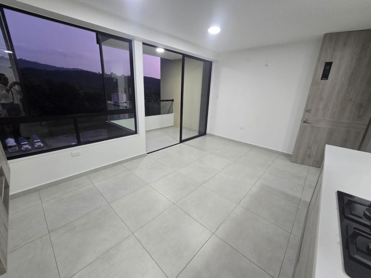 Área de 77.44 m² con balcón y vista exterior, estrato 4, antigüedad 1 año, piso alto con ascensor, parqueadero. Zona social. Consta de 3 habitaciones, 2 baños, sala comedor, Star Tv, cocina integral con acabados y zona de lavandería.